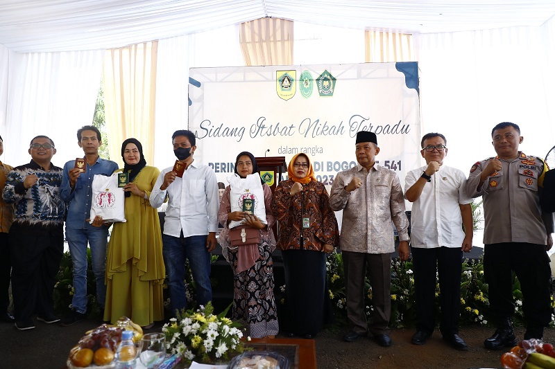 CIBINONG, newsatu.com – Pemerintah Kabupaten (Pemkab) Bogor isbat nikahkan sebanyak 78 pasangan suami istri (pasutri) di halaman Kantor Kecamatan Cibinong, Jumat (9/6). Sidang isbat terpadu tersebut masih dalam rangkaian peringatan Hari Jadi ke-541 Bogor (HJB).