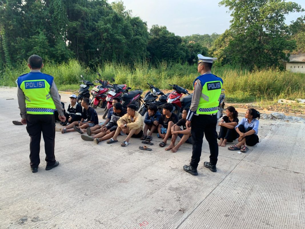 AMANKAN : Personel Satlantas Polres Prabumulih membubarkan aksi balap liar di Jalan Lingkar Kelurahan Sukaraja, Kecamatan Prabumulih Timur, Minggu sore. Foto : Ist/NEWSATU.COM