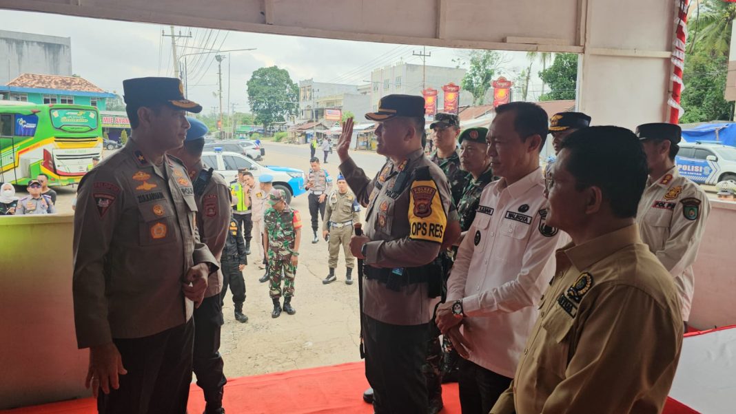 CEK : Wakapolda Sumsel, Brigjen Pol M Zulkarnain SIk MSi mampir di Posyan RM Siang Malam melakukan pengecekan pelayanan publik di jalur mudik Prabumulih – Muara Enim, Minggu. Foto : Rian/NEWSATU.COM