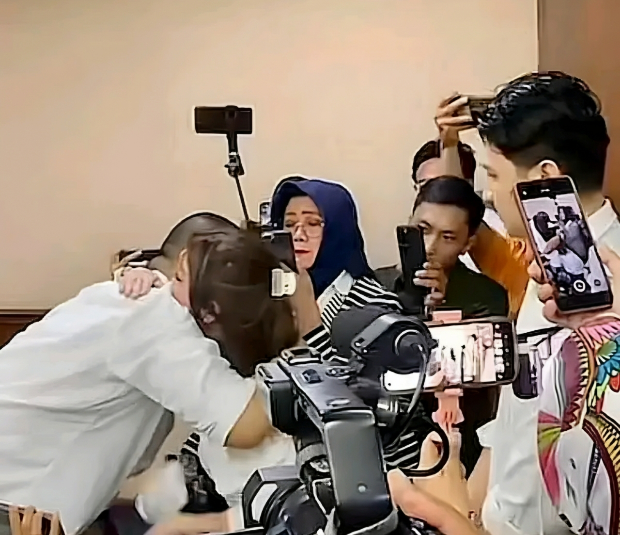Dokter Kamelia kemudian menghampiri Ammar dengan membawa tisu. Keduanya sempat berpelukan beberapa detik sebelum Ammar duduk di bangku terdakwa bersama lima terdakwa lainnya.