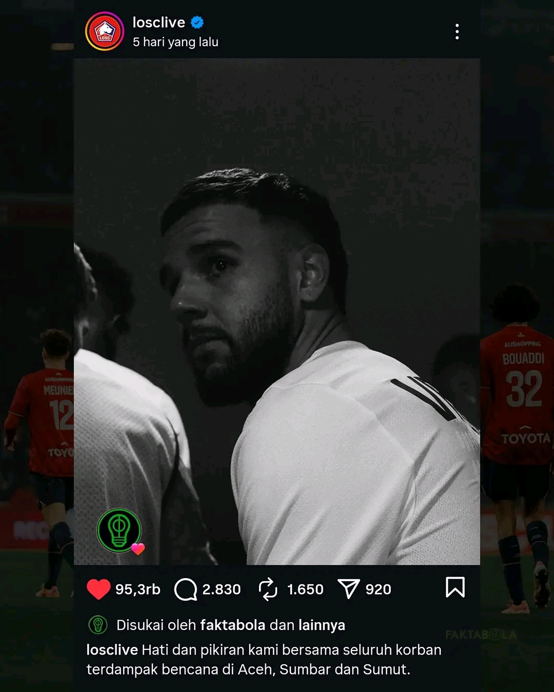 Dukungan juga datang dari LOSC Lille, yang secara khusus menyebut daerah yang paling terdampak seperti Aceh, Sumatera Barat, dan Sumatera Utara.