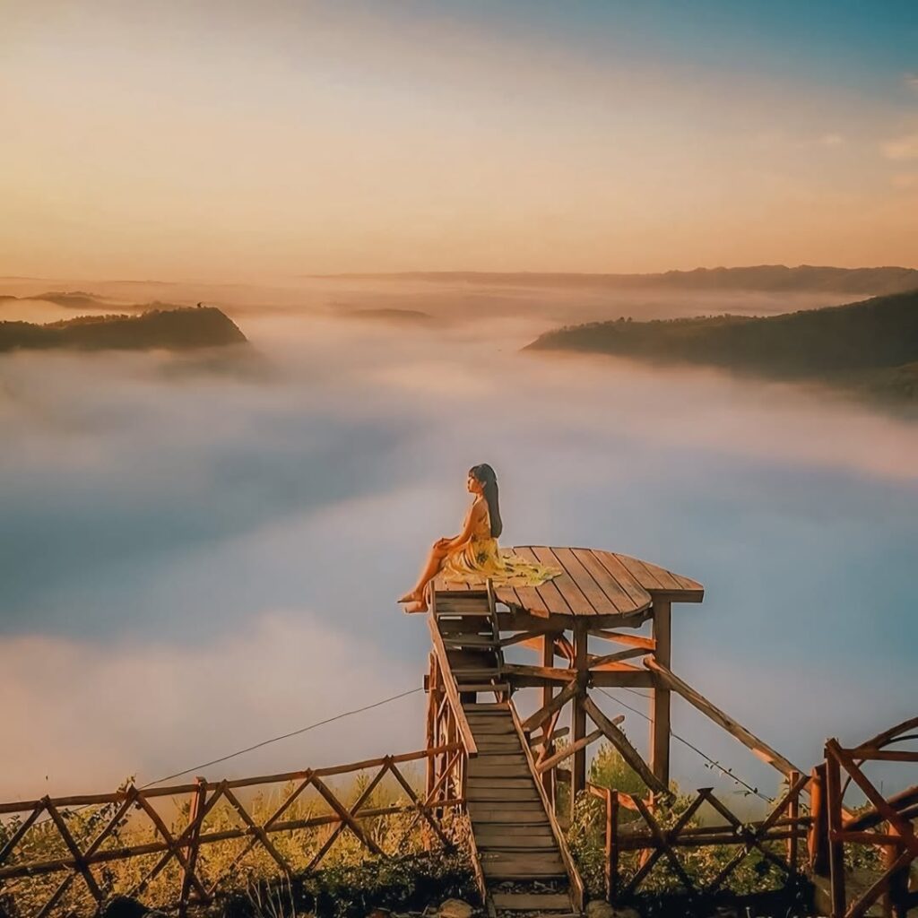 Bukit Panguk adalah spot sunrise terbaik di Jogja. Kabut pagi sering tebal sehingga view-nya seperti berada di atas awan. Harga tiket masuk cuma sekitar Rp5.000–Rp10.000, parkir motor Rp3.000, mobil Rp5.000. Tempatnya natural, tenang, dan cocok untuk foto siluet sunrise atau sekadar menikmati udara pagi.