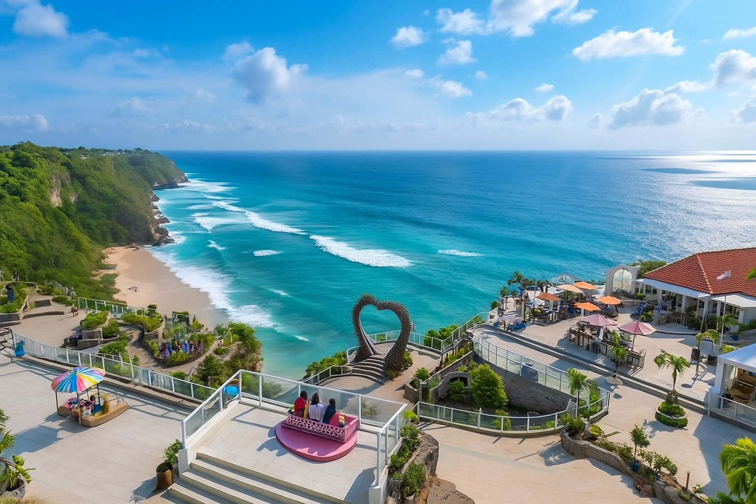 HeHa Ocean View menghadirkan panorama laut selatan dari tebing tinggi vibes Bali yang elegan. Harga tiket masuk sekitar Rp20.000–Rp25.000. Spot foto premium mulai Rp10.000. Tempatnya penuh spot artistik, jalanan estetik, dan cafe outdoor buat menikmati angin laut. Cocok buat yang suka pantai tapi mau sudut pandang berbeda.